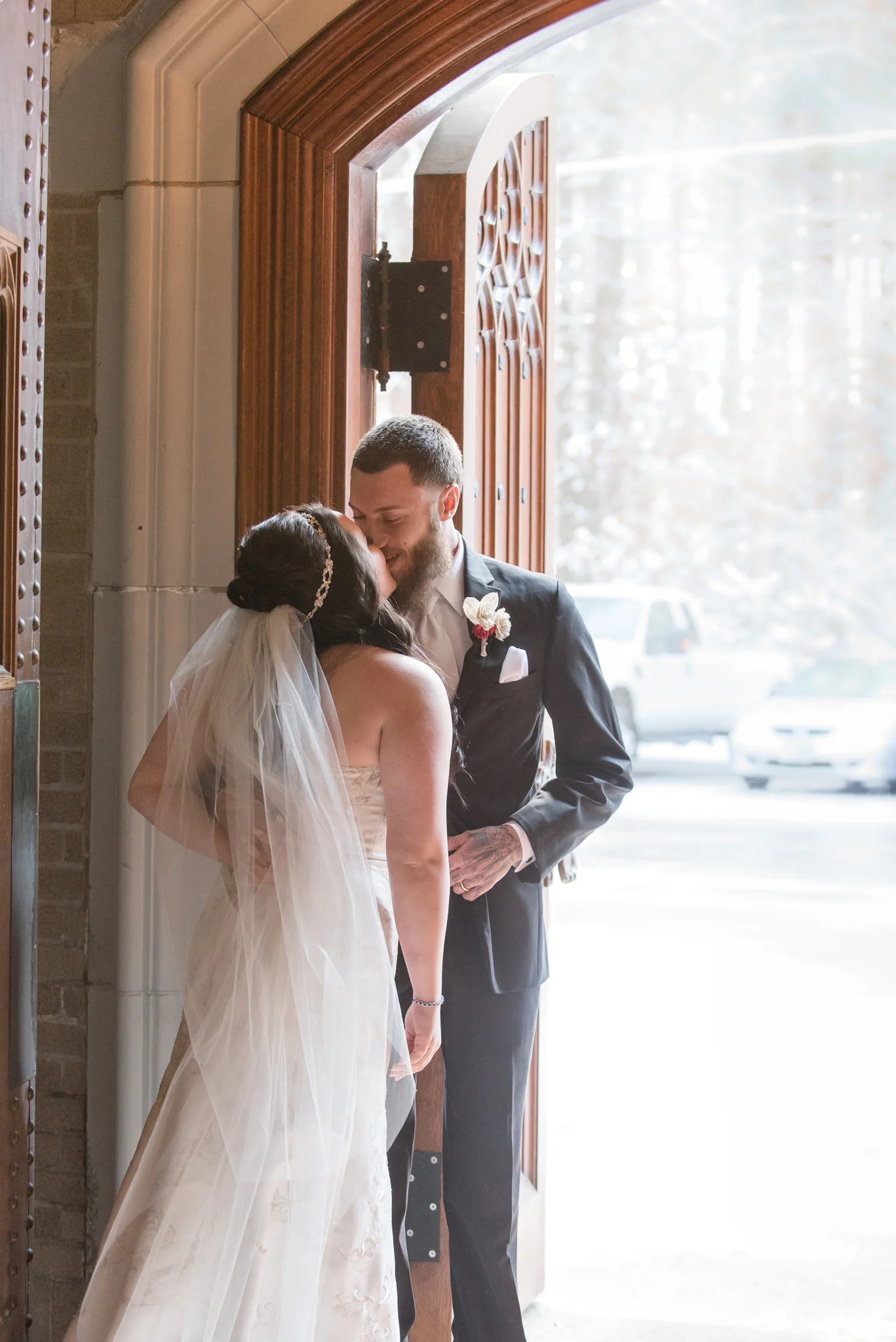 Bailey and Jason were married on December 10, 2017 at the beautiful Alvirne Chapel in Hudson NH. We had a small snow storm the day before the wedding, which provided some beautiful back drops for this wintery wedding. There was even some winds that came and went, which gave us some snow drifts making it look like it was snowing during the photos. Pretty chilly at times, but this bride and groom were very calm and cool about the weather and everything else, that the went by seamlessly.