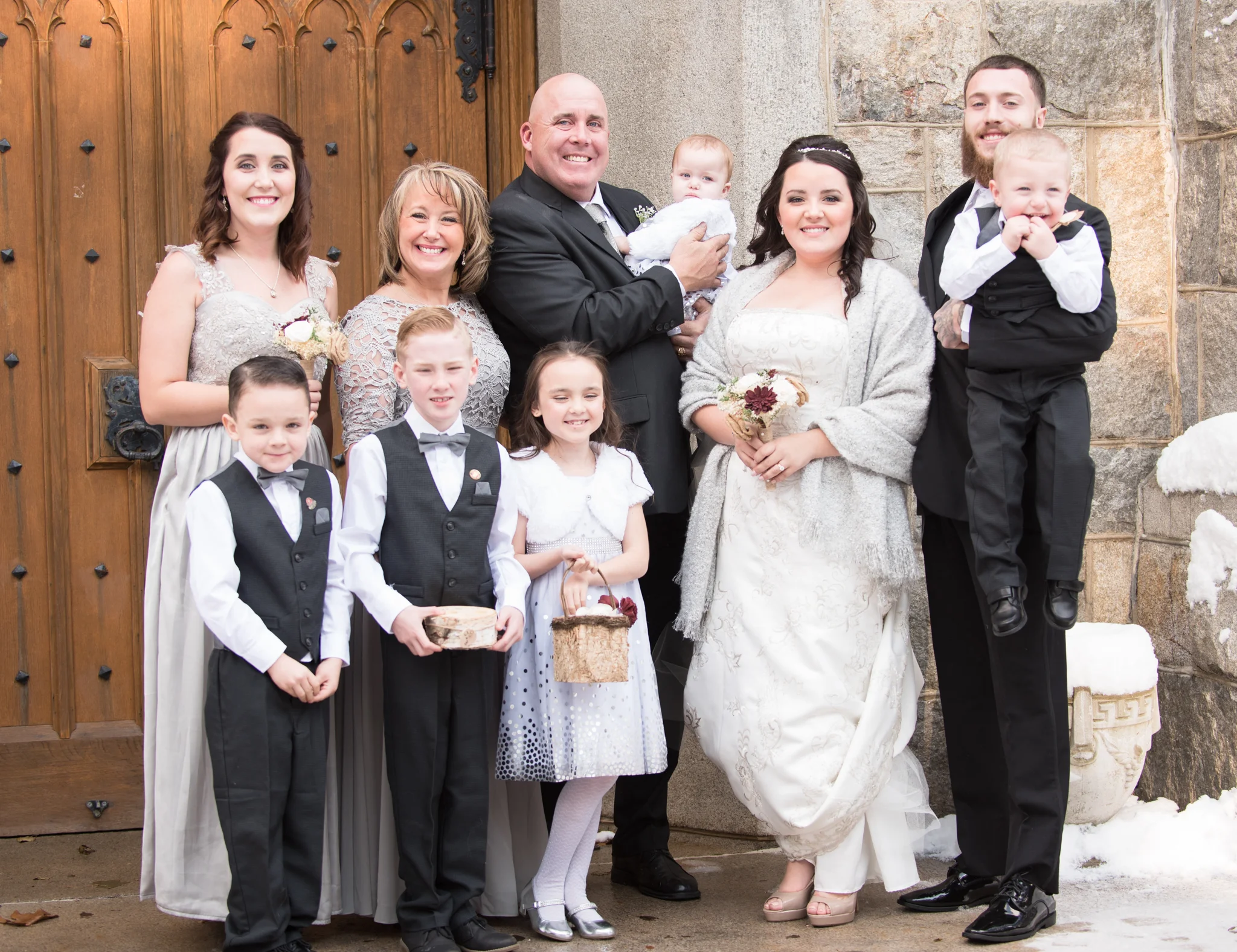 Bailey and Jason's 6 month old daughter was the adorable flower girl, while Jason's son was the ring bearer. Unfortunately he fell asleep on the ride to the church, and had to be escorted down the aisle by his aunt, who served as Bailey's matron of honor.